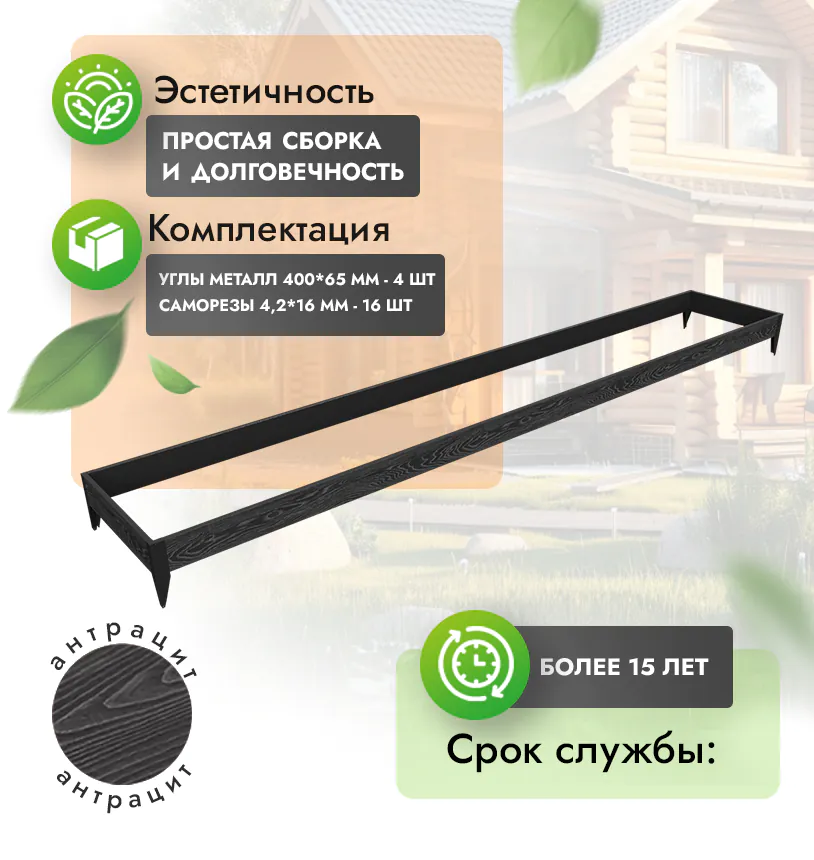 • Комплект грядок ДПК прослужит минимум 15 лет даже в самых агрессивных условиях.